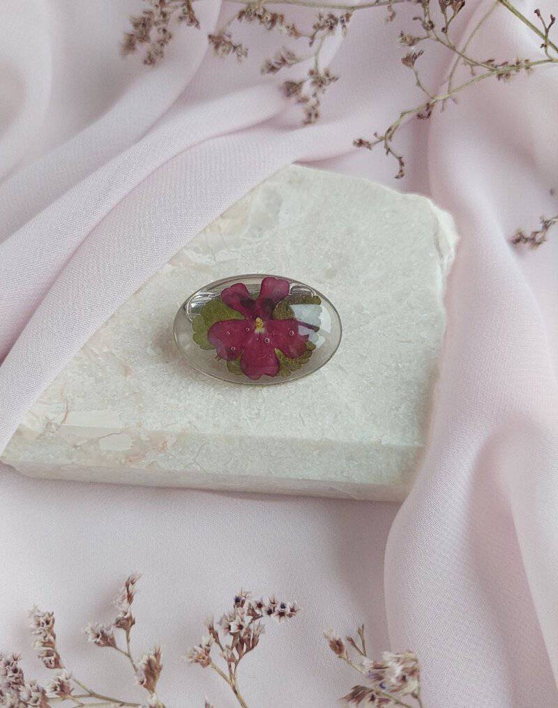 Materijal: dvokomponentna smola, suho cvijeće i nehrđajući čelik
