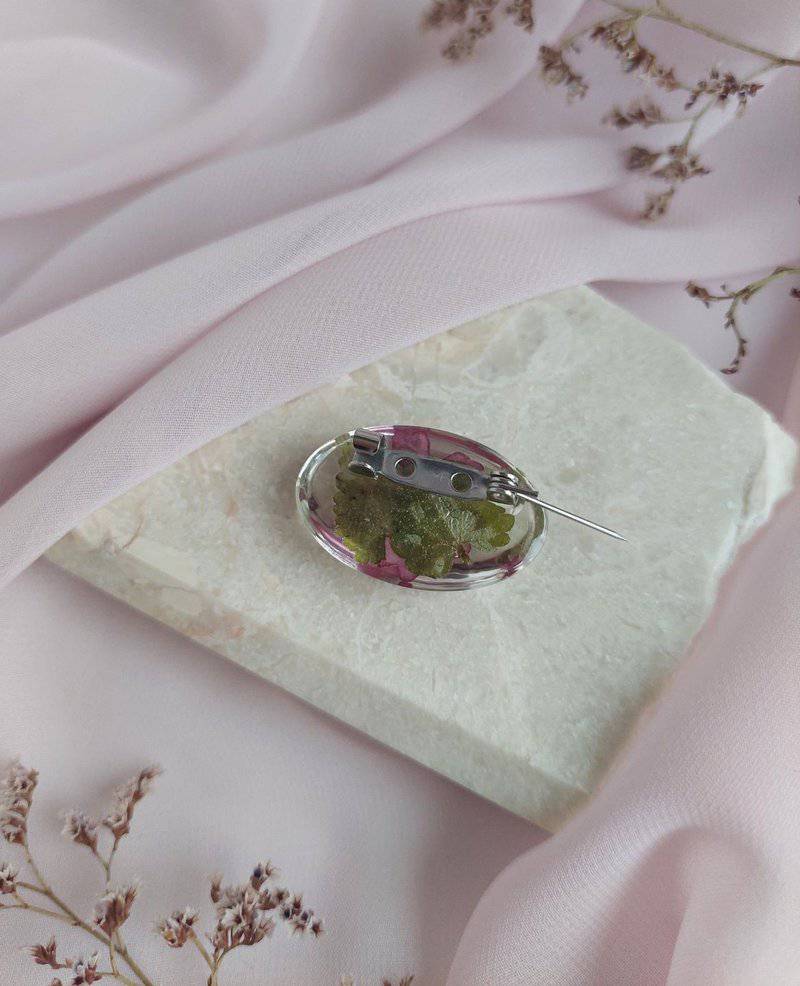Broš je izrađen sa listićem i verbenom. SImbol zaštite, ljubavi, sreće, šarma, kreativnosti.