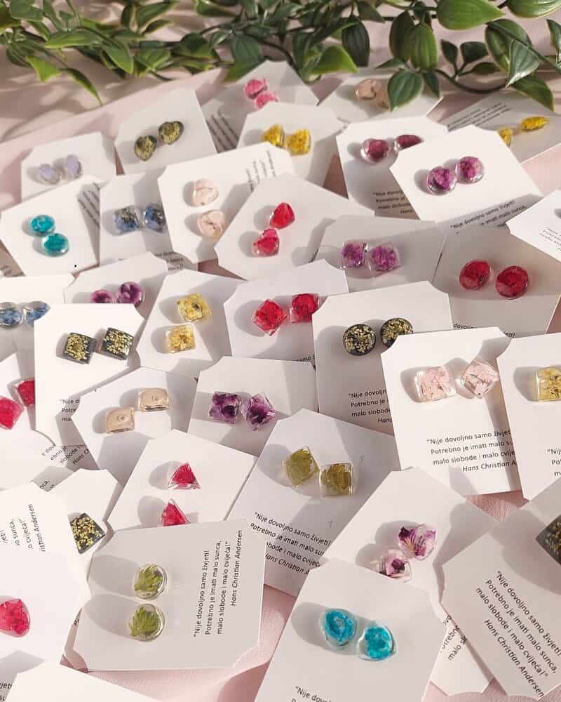 Ove naušnice posebno su nam drage i često pitate da li je stvarno pravo cvijeće u njima? Pitate se kako uspijemo izraditi nešto tako malo sa pravim cvijećem 🙂
