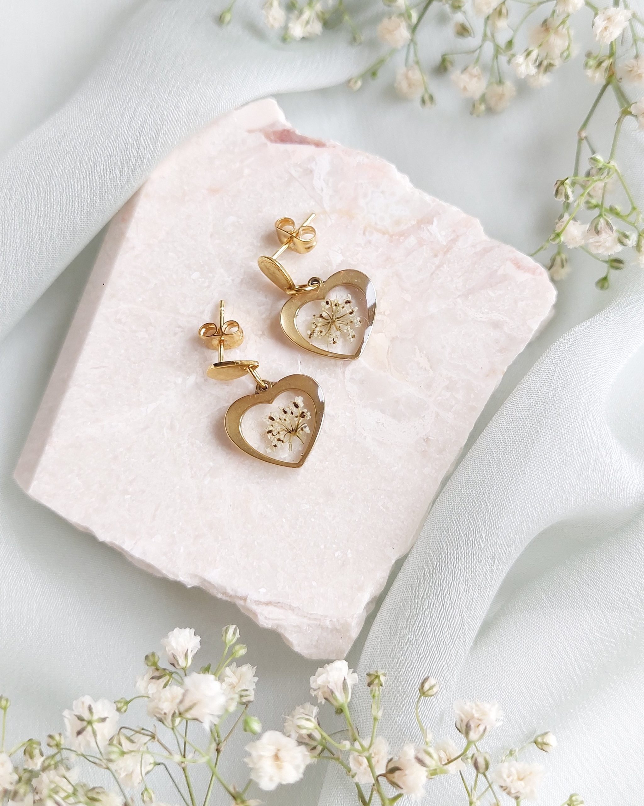 Naušnice su izrađene sa cvijetom divlje mrkve koji simbolizira sigurnost, utočište, maštovitost i ženstvenost.