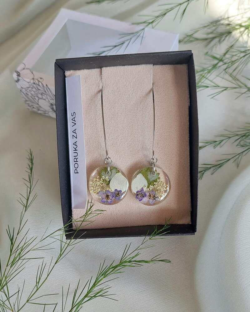 Naušnice su izrađene sa kokotićem, listićem, divljom mrkvom i plavim cvijetom. Simbol otvorenosti, inspiracije, maštovitosti, hrabrosti, uspjeha.
