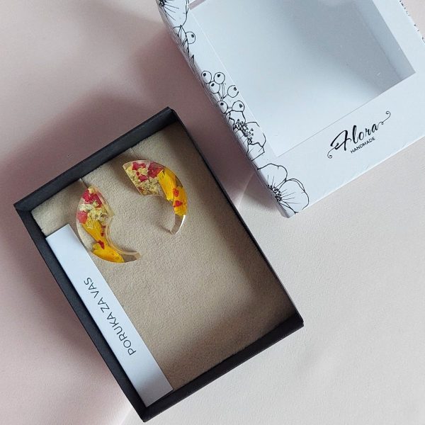 Naušnice su izrađene sa pelargonijom, rudbekijom i alisumom. Simbol snage, podrške, motivacije, prijateljstva, sreće.