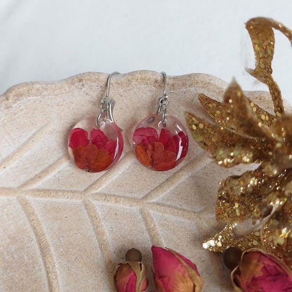 Naušnice su izrađene sa crvenom pelargonijom — simbol podrške, snage, samopouzdanja, prijateljstva i sreće.