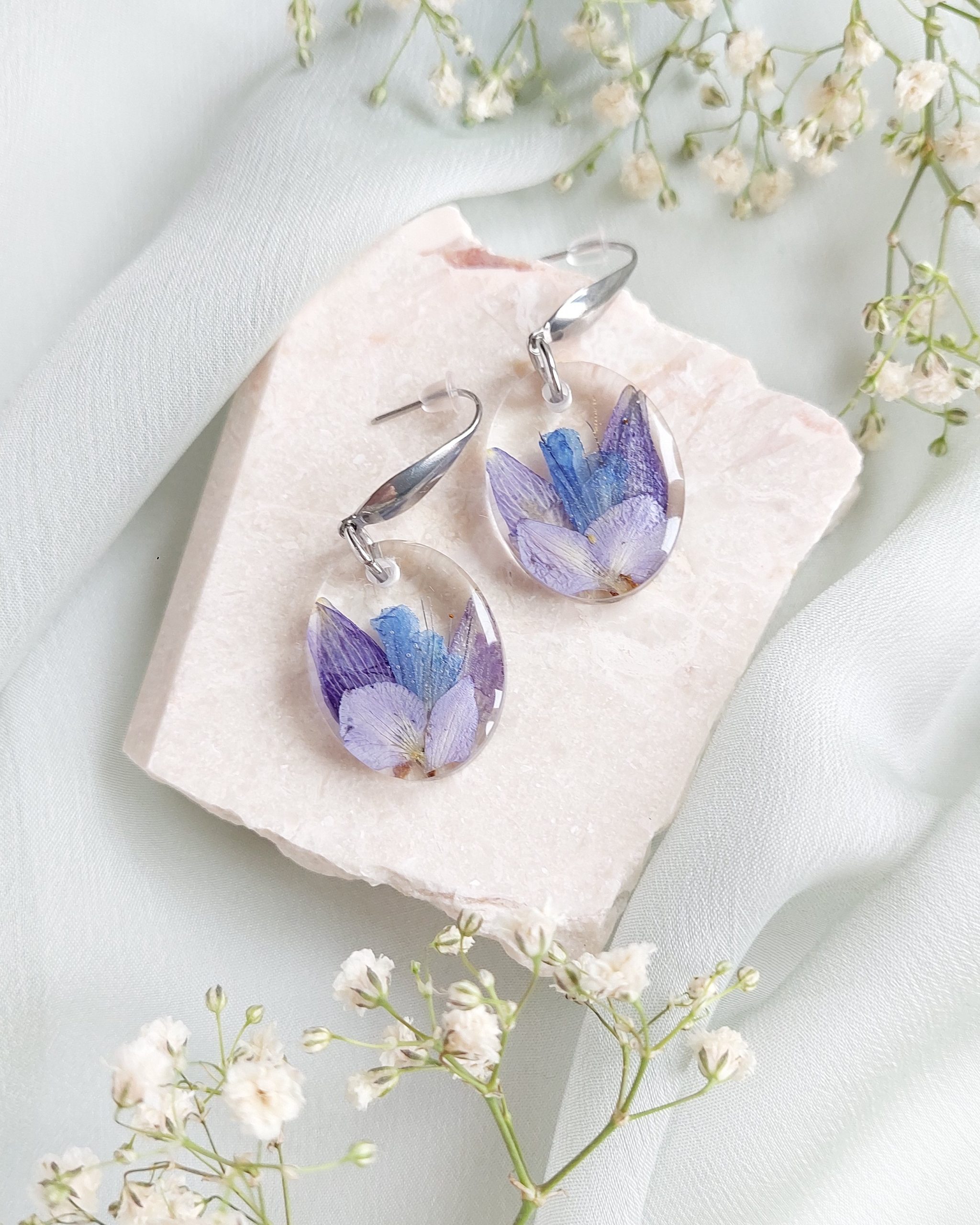 Materijal: dvokomponentna smola, suho cvijeće, nehrđajući čelik
