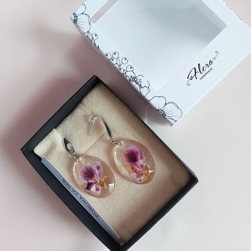 Naušnice su izrađene sa šatiranom pelargonijom koja simbolizira pozitivne emocije i prijateljstvo.