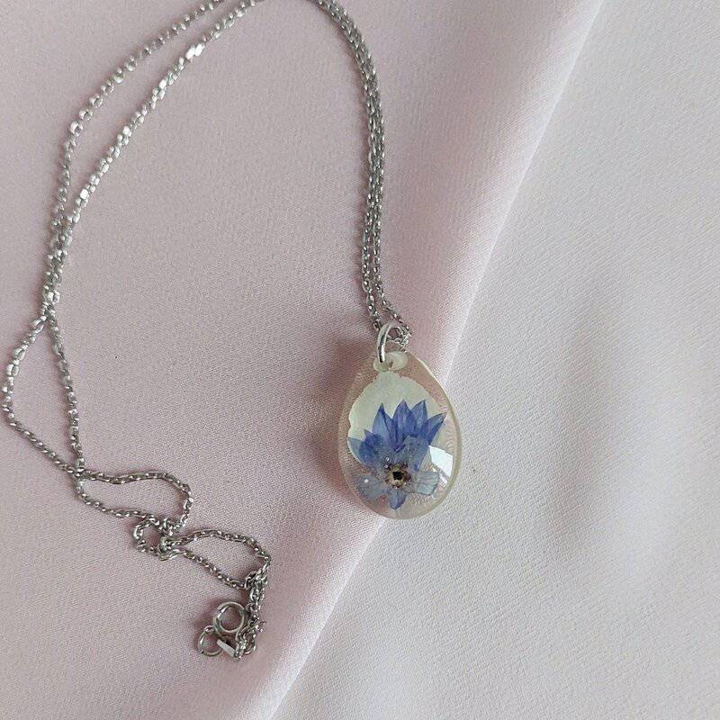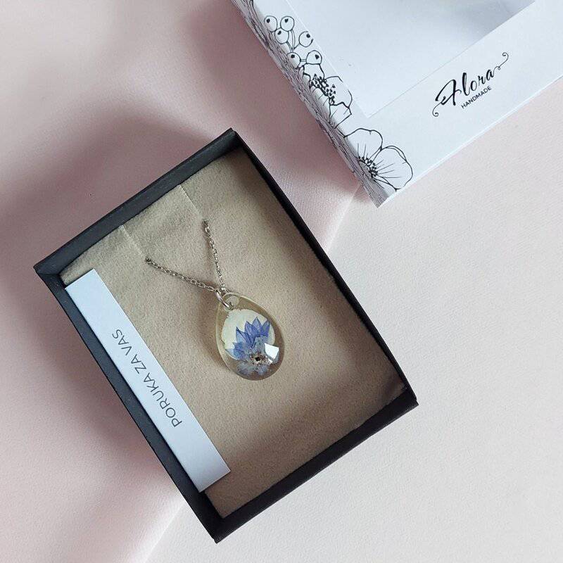 Ogrlica je izrađena sa različkom, plavim cvijetom i kokotićem. Simbol posvećenosti, iskrenosti, hrabrosti, otvorenosti, uspjeha, inspiracije.