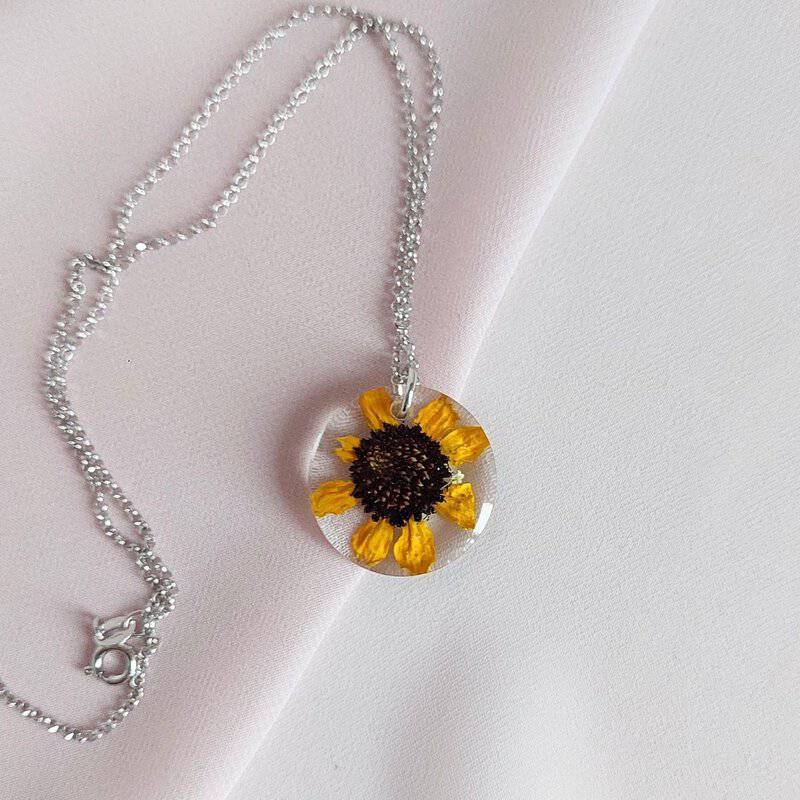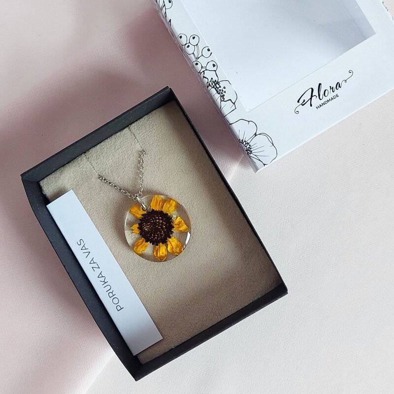 Ogrlica je izrađena sa cvijetom rudbekijom koja simbolizira motivaciju i podršku.
