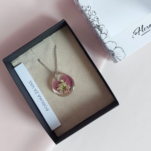 Ogrlica je izrađena sa laticama cvijeta ukrasne trešnje i divljom mrkvom. Simbol maštovitosti i ženstvenosti.