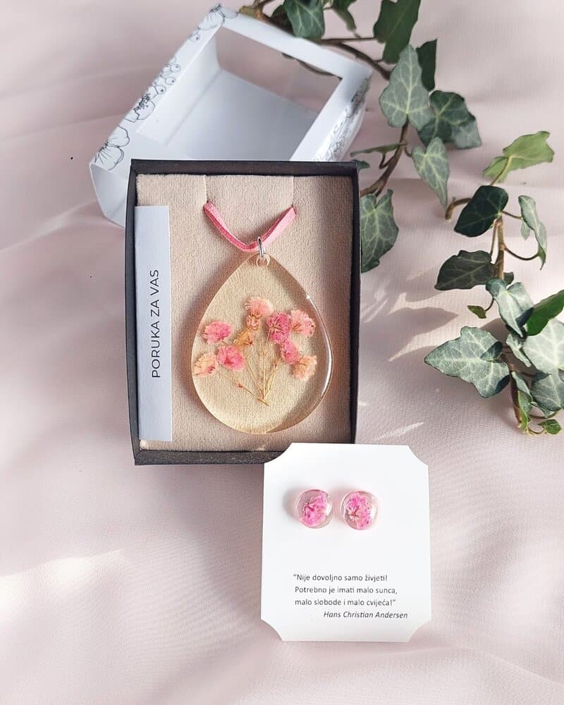 - Cvijeće: pravo, sušeno i ručno ugrađeno u smolu