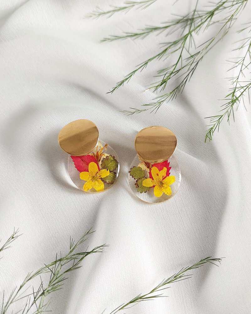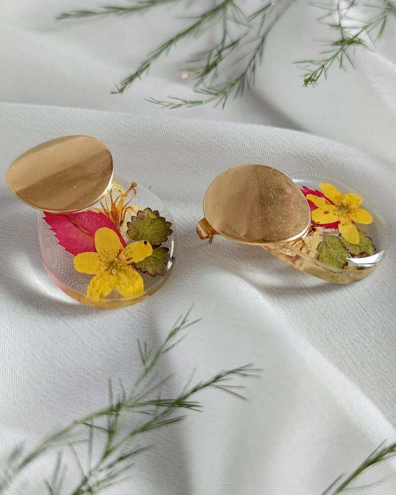Naušnice su izrađene sa listićima i žutim cvijećem. Simbol snage, prijateljstva, novih početaka, sreće.