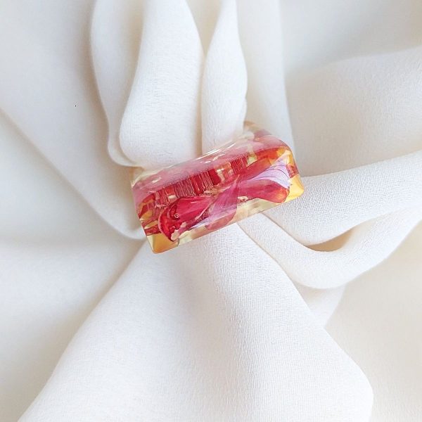 Prsten je izrađen sa crvenom pelargonijom koja simbolizira podršku, prijateljstvo, snagu, samopouzdanje, sreću.